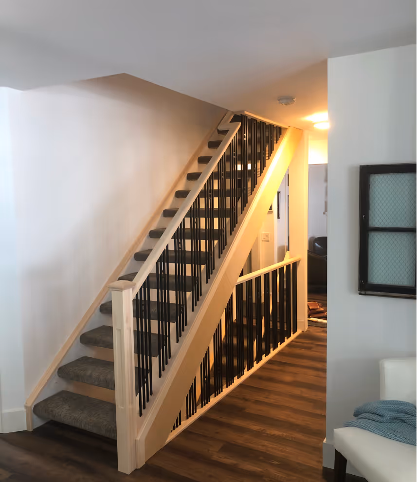 Warm treads, graceful rise, and sturdy rails connect floors safely and beautifully.